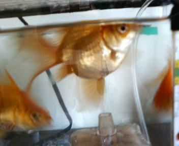今日はぎんぽんと二人で実家へ行きました~ 大事に抱えて行ったはずのケーキ が、無残な姿になっちゃってー 写真が取れなかったけど…孫の気持ちのこもったケーキ♪ 外見は気にせず、喜んで食べてくれましたっ 実家には飼い始めて1年半程になる金魚が3匹います。 で、↓↓のが、群を抜いてのおデブさん 親近感が湧き、思わず撮影 はちきれそうなお腹がちょっと… ヤバイ感じです