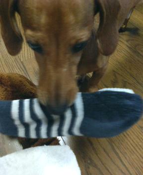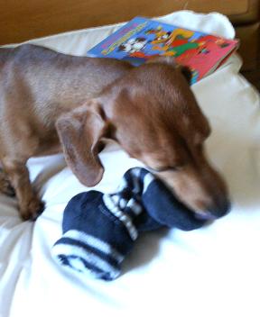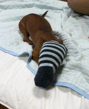 へぇ~~これが新しいパチョコンね~ だれか、遊んでよぉ みんなでパチョコンばっかやって…つまんないなぁ (_ _。)・・ 退屈なので、 【くつした】を盗んでみたり… 噛み噛みしてみたり… うぐぐぅ~ たちけて~~ くつした仮面にされてしまったぁ( ̄ロ ̄lll)