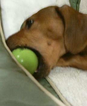 テニスボールは…表面のケバケバを丁寧にかじって、終いには飲み込んじゃう