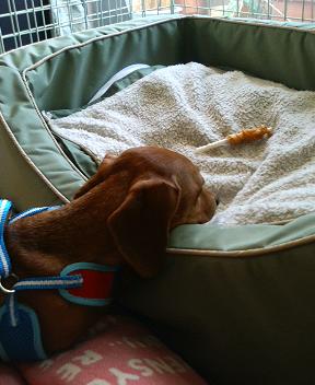 いつもなら自分の陣地でサッサと食べちゃうか、ベッドに隠すかするのに…