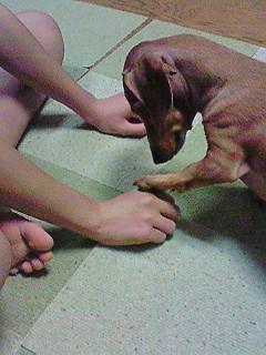 何故か?コロはチビ兄の右手ばっかり選ぶんですよっ