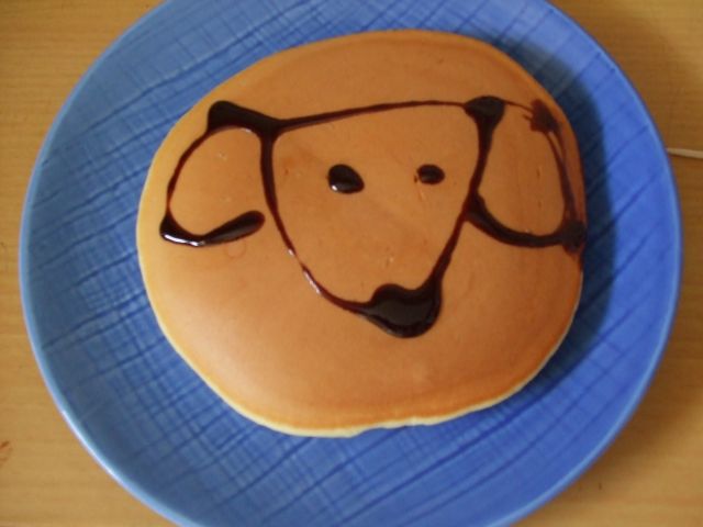 もう一つ… ぎんぽん兄ちゃんの手作りホットケーキにチョコでコロの似顔絵を描いてくれました
