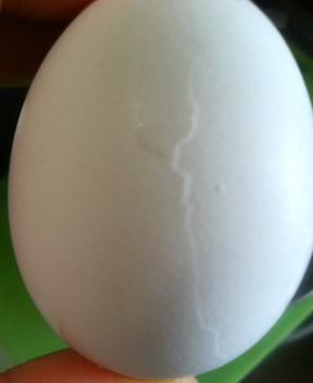 ①先ず始めに、卵の横の面に微妙なヒビを入れる!
