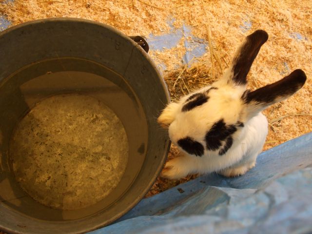 ”ふれあい牧場”では…うさちゃん♪お水を飲みに来たのね~