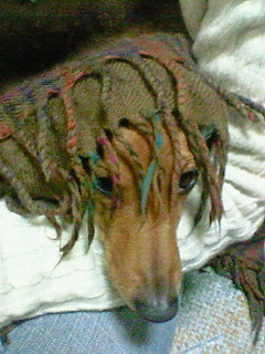布団乾燥機を掛けたばかりの布団の上に居ます