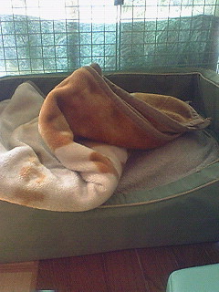 だいたい、掛けてるブランケットもご覧の通りボロボロだし、ねッヾ(≧m≦)ノ